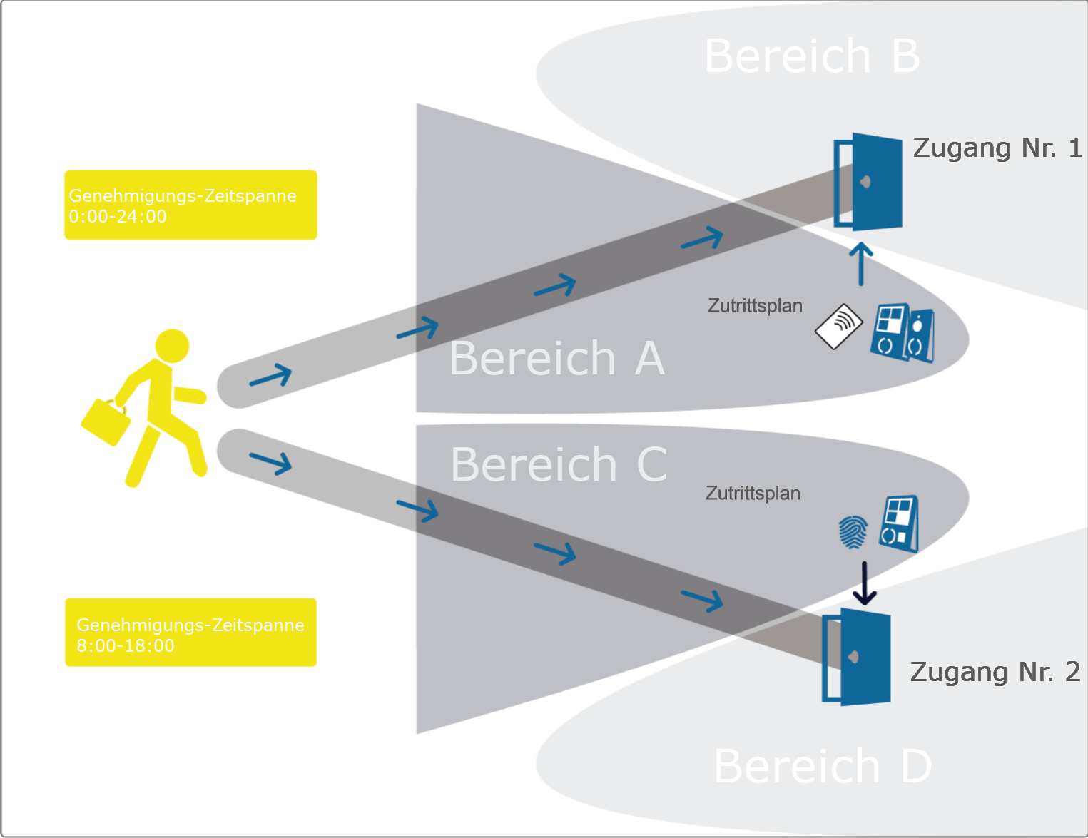 Durch Kombination dieser beiden Elemente entscheidet das System, ob und wie der Mitarbeiter zum Zugang berechtigt ist.