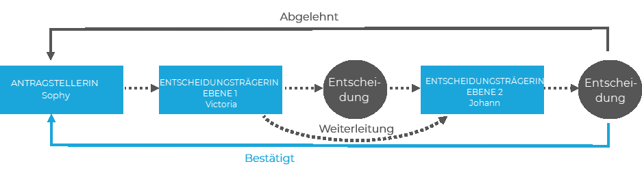 3.Sie bestätigt den Antrag, die Datei wird dem Entscheidungsträger höherer Ebene Johann Bräuer übermittelt.