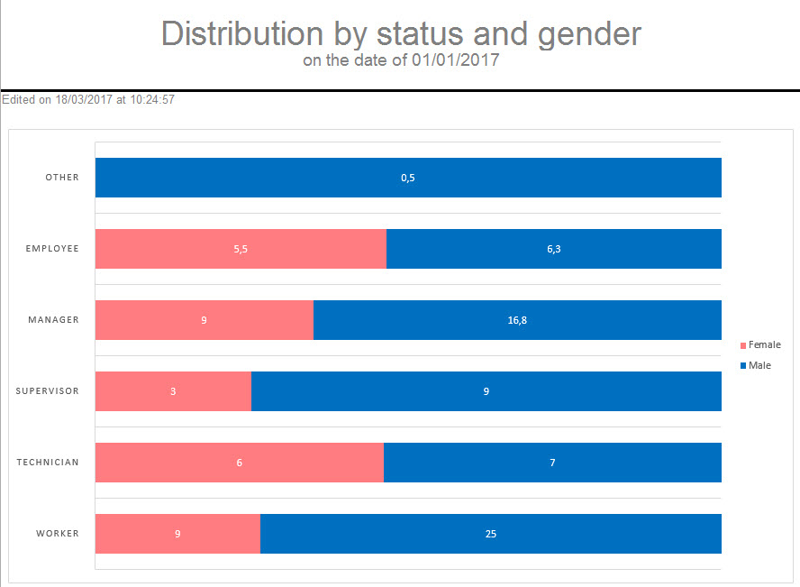 •If the employee does not have a category status on the extraction date, then he/she is not counted •If the employee does not have one of the category statuses selected on the extraction date, then he/she is not counted. •If inclusion of full-time equivalent is checked, then: othe employee counts for 1 X the rate of the contract, otherwise he/she counts for 1. oemployee number = total rates/100, otherwise employee number = number of employees processed. |