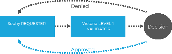 3.If she accepts the request, the file is submitted to the higher level validator Marc.