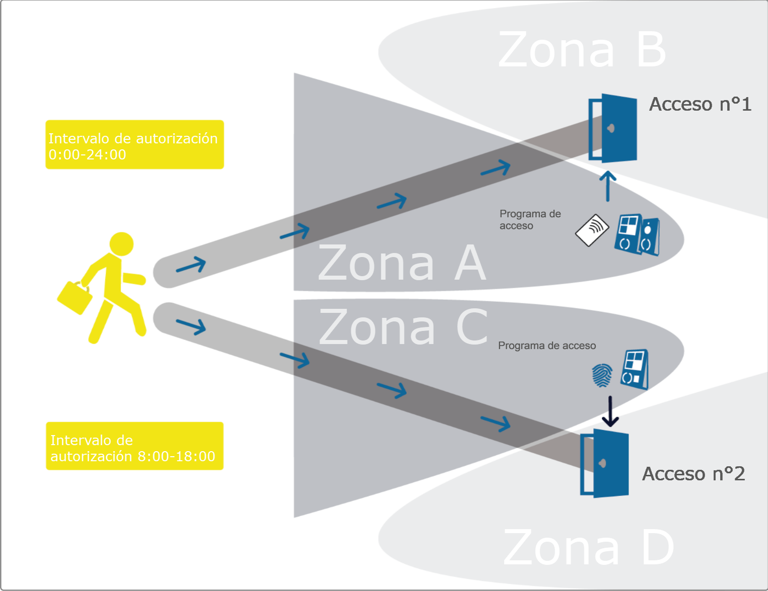 •un acceso está asociado a un programa de acceso que define los niveles de seguridad sobre diferentes períodos (día, semana, mes).