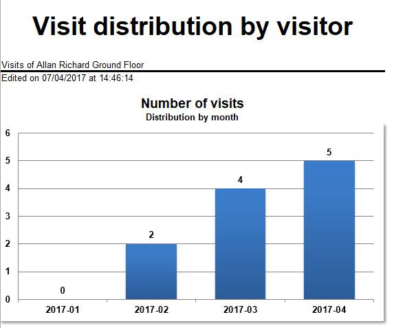 El sistema genera un fichero con una tabla informe que presenta el número de visitas repartidas por mes.