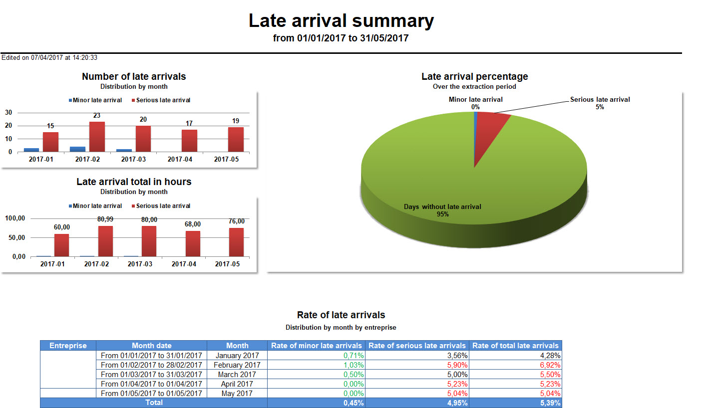 Para cada período elegido, el sistema suma los diferentes acumulados de retraso de los empleados.