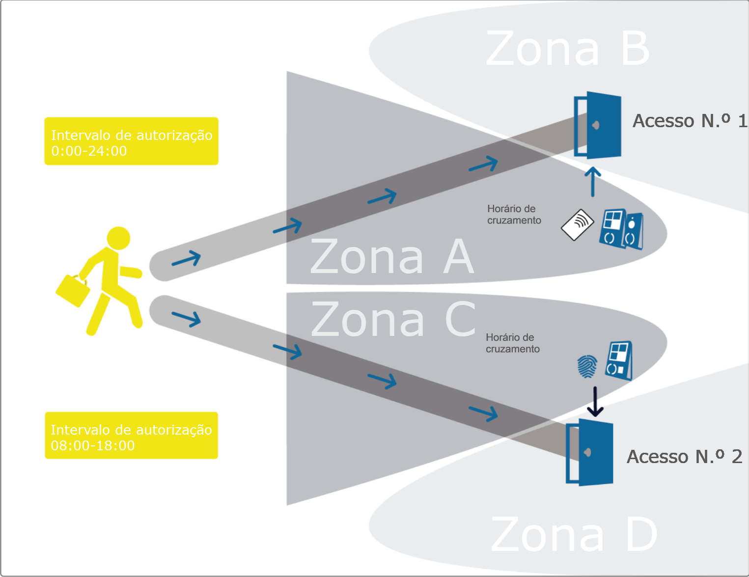 •o acesso é anexado a um horário de acesso que define níveis de segurança para diferentes períodos (dia, semana, mês).