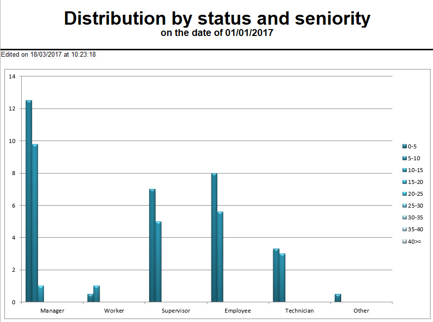 The report populates the model file with the list of results for each category status description in alphabetical order and for each seniority bracket, from the youngest to the oldest.