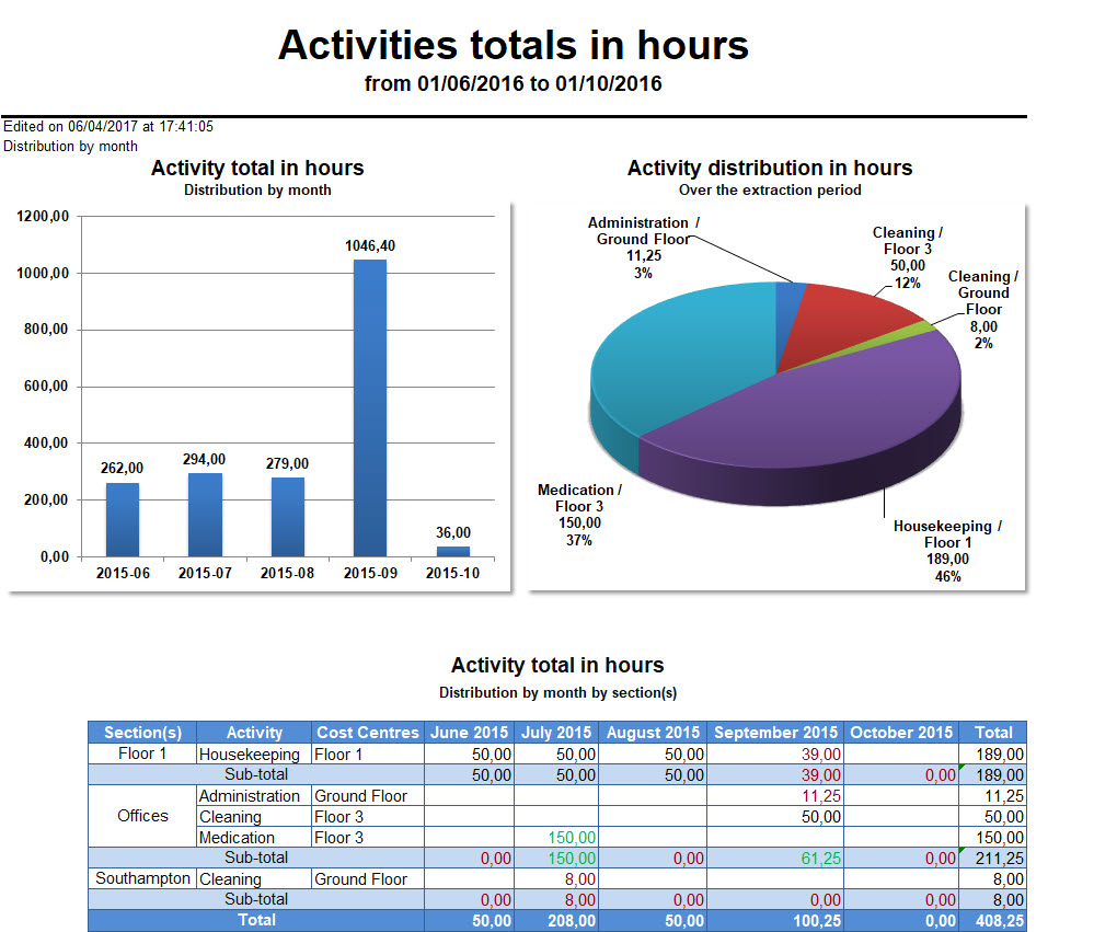 For each period selected, the system adds employees' various totals in days for each activity total/cost centre selected.