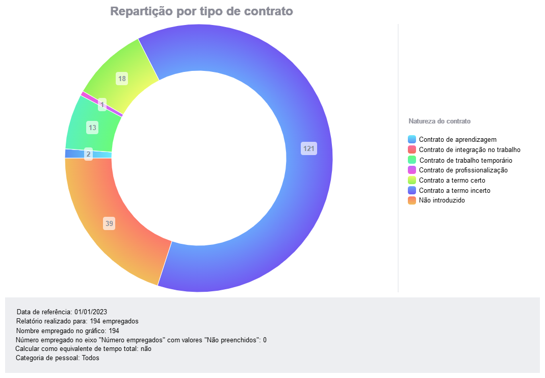 A repartição por tipo de contrato |