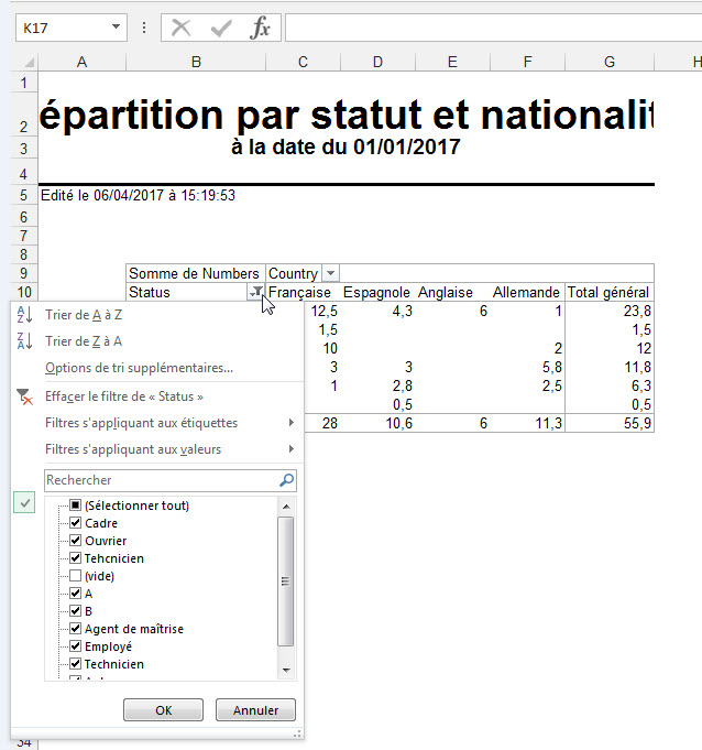 L’édition s’ouvre en format Excel® et peut ensuite être adaptée à vos besoins.