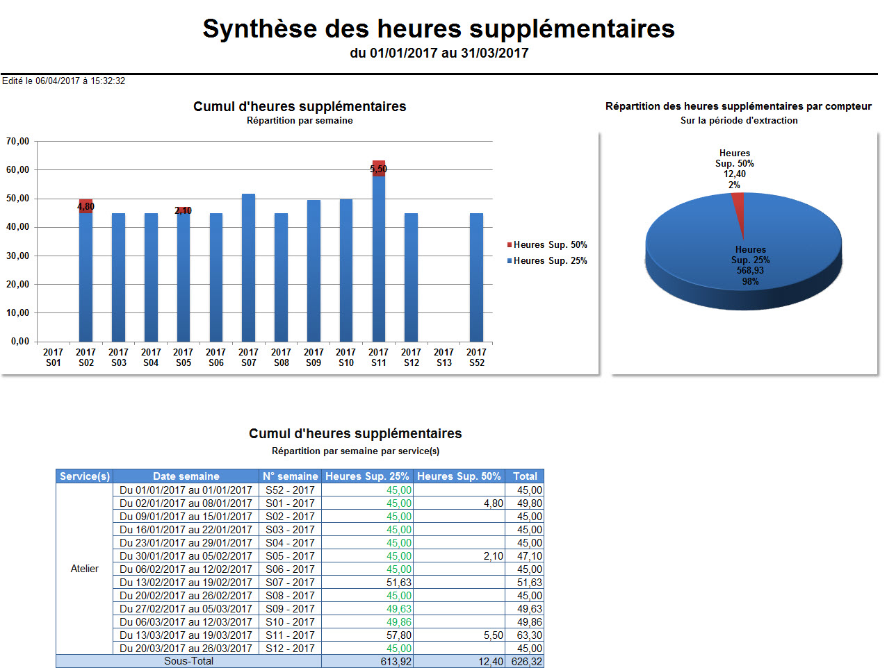 Pour chaque période choisie, le système somme les différents cumuls jour des salariés pour chaque compteur d'heures supplémentaires sélectionné.