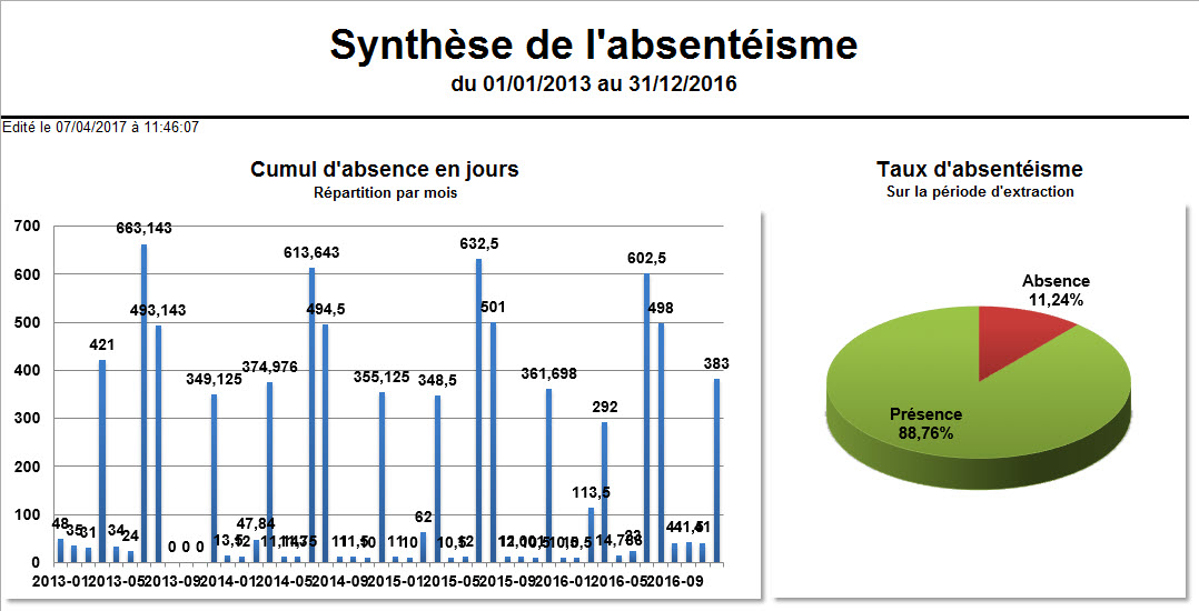 •Nombre d'heures d'absence : il s'agit du cumul des heures d'absences à prendre en compte pour le calcul du taux d'absentéisme sur la période demandée.