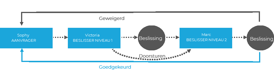 Men moet er, in geval van een goedkeuring op verschillende niveaus, op letten dat er geen overlappingen zijn in de cyclus van afwezigheidsverzoeken van een werknemer.